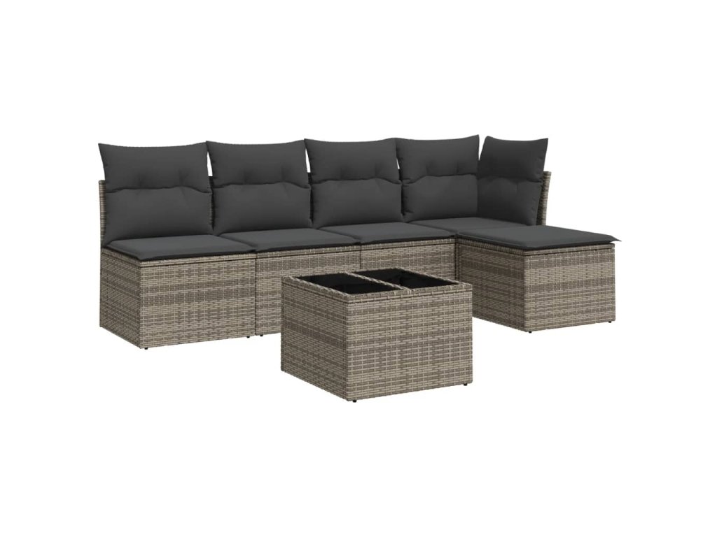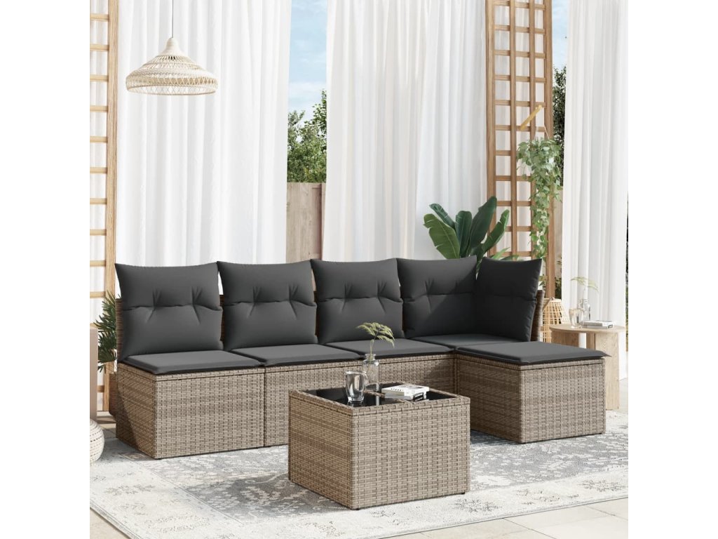 6dílná zahradní sedací souprava s poduškami šedá polyratan 3217530