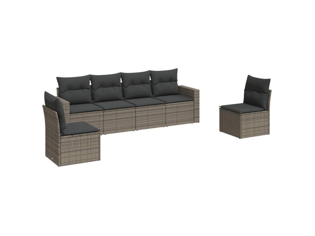 6dílná zahradní sedací souprava s poduškami šedá polyratan 3218800