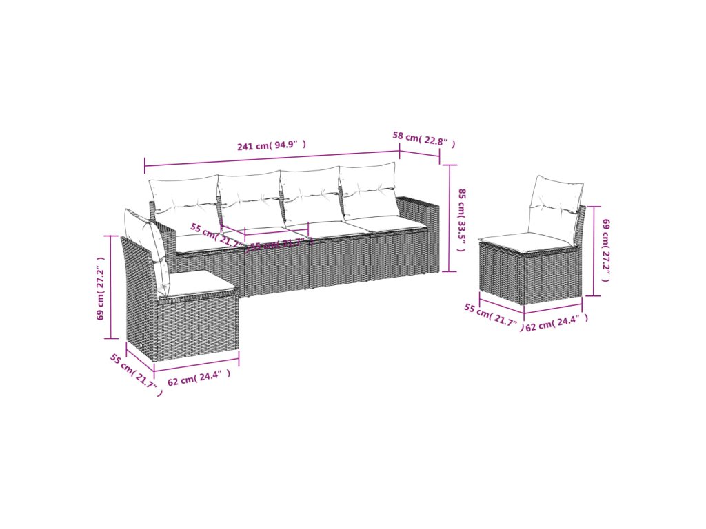 Tato zahradní sedací souprava je dokonalým doplňkem vaší zahrady, terasy nebo dvorku a poskytne vám pohodlné a příjemné místo, kde si můžete povídat s rodinou a přáteli nebo jen tak odpočívat a užívat si pobyt venku.