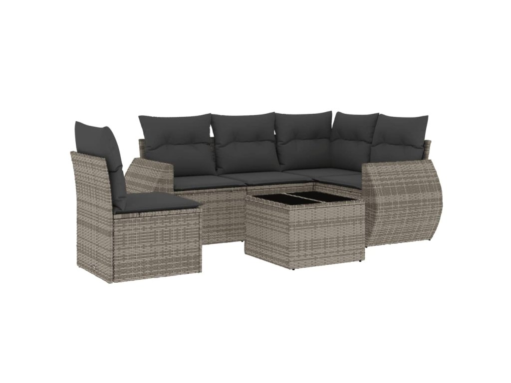 6dílná zahradní sedací souprava s poduškami šedá polyratan 3221379