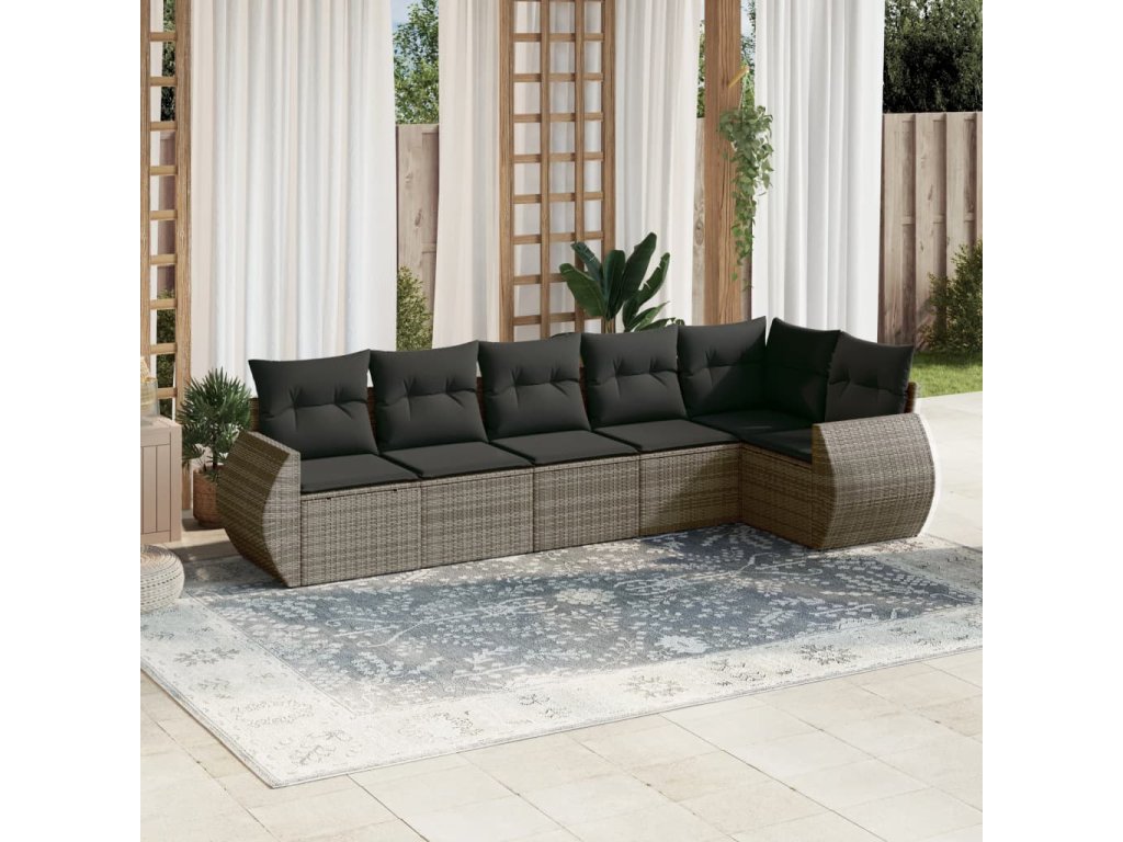 6dílná zahradní sedací souprava s poduškami šedá polyratan 3221389