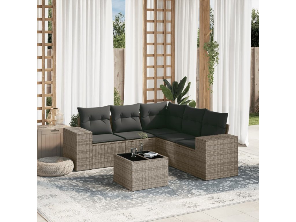 6dílná zahradní sedací souprava s poduškami šedá polyratan 3222559