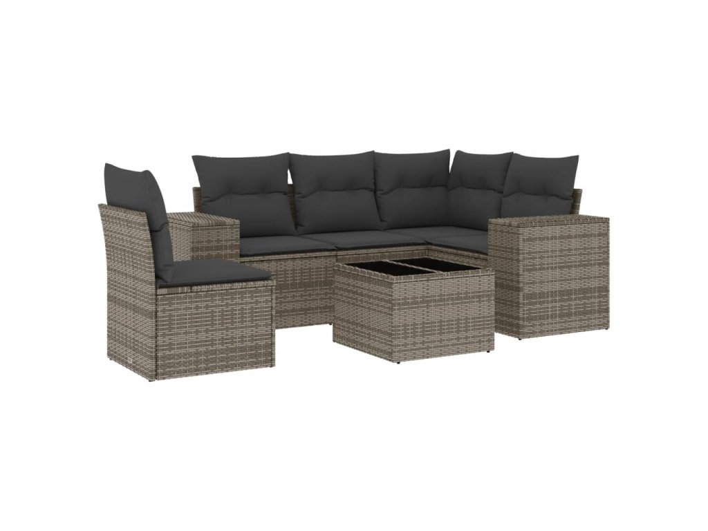 6dílná zahradní sedací souprava s poduškami šedá polyratan 3222579