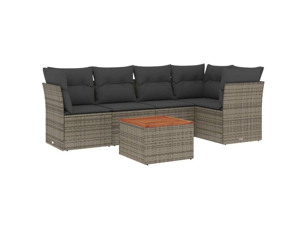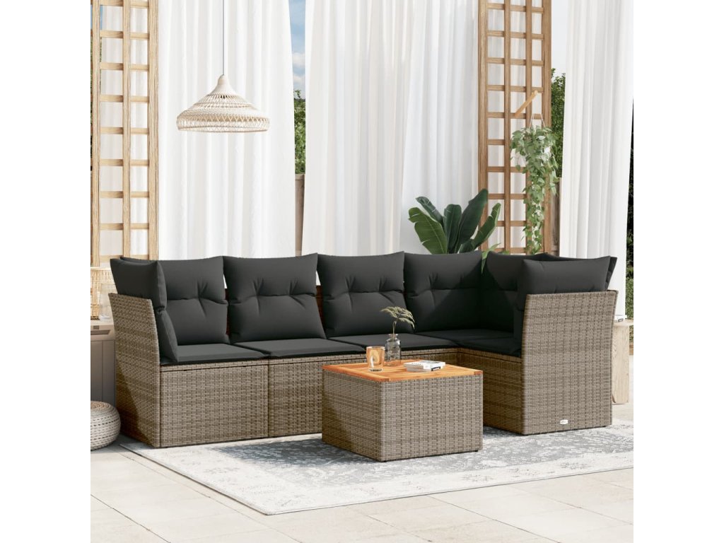 6dílná zahradní sedací souprava s poduškami šedá polyratan 3223631