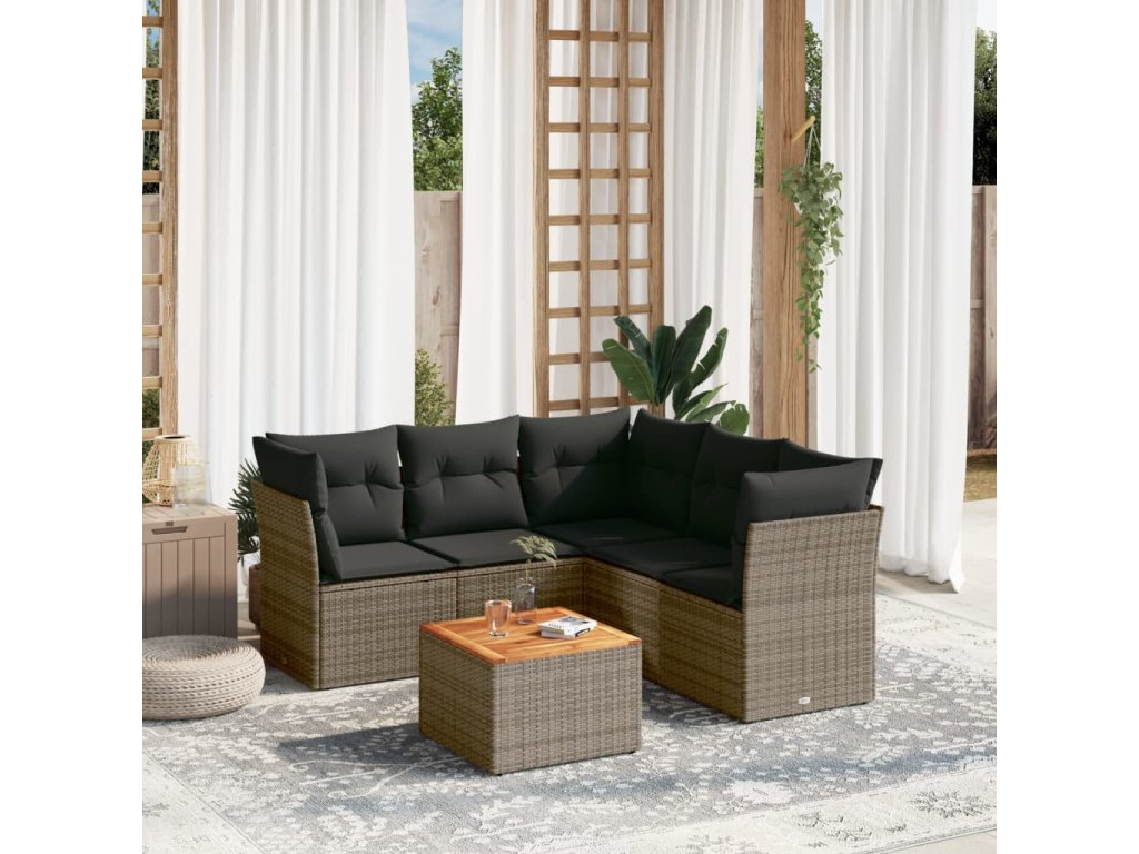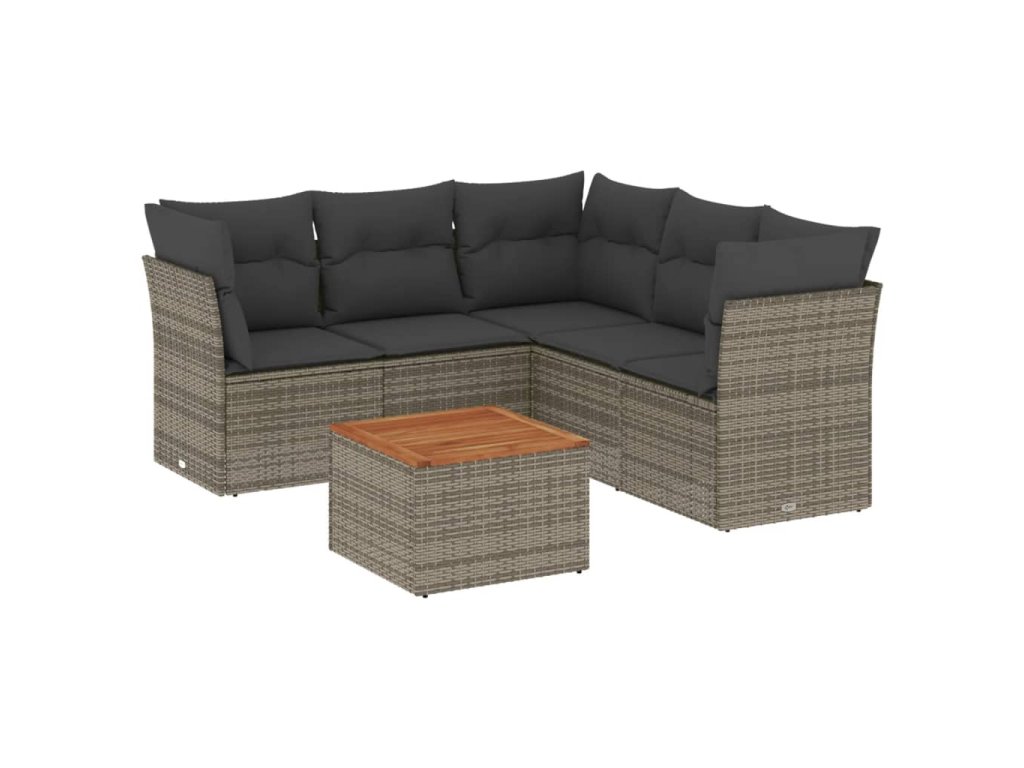 6dílná zahradní sedací souprava s poduškami šedá polyratan 3223638