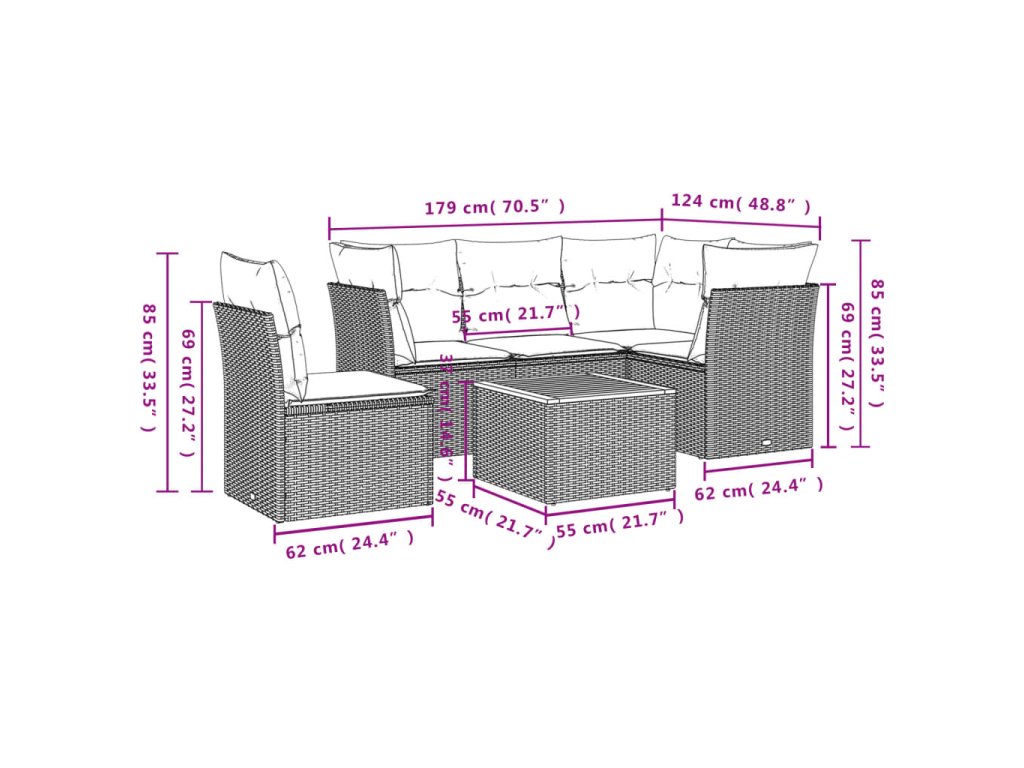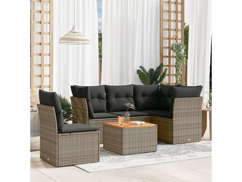 6dílná zahradní sedací souprava s poduškami šedá polyratan 3223645