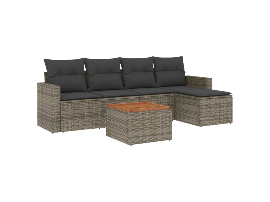 6dílná zahradní sedací souprava s poduškami šedá polyratan 3224100