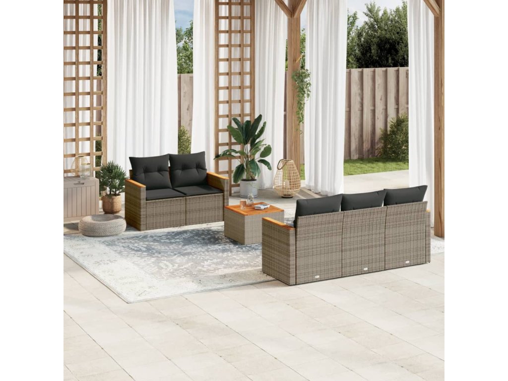 6dílná zahradní sedací souprava s poduškami šedá polyratan 3225787