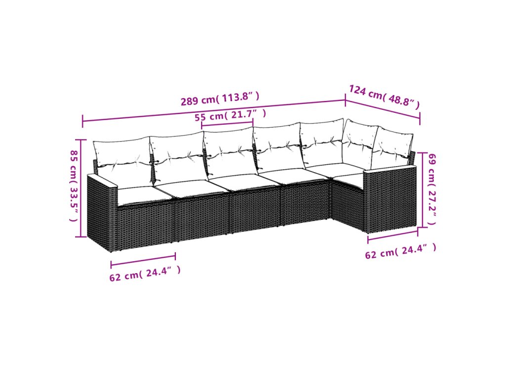 6dílná zahradní sedací souprava s poduškami šedá polyratan 3225990