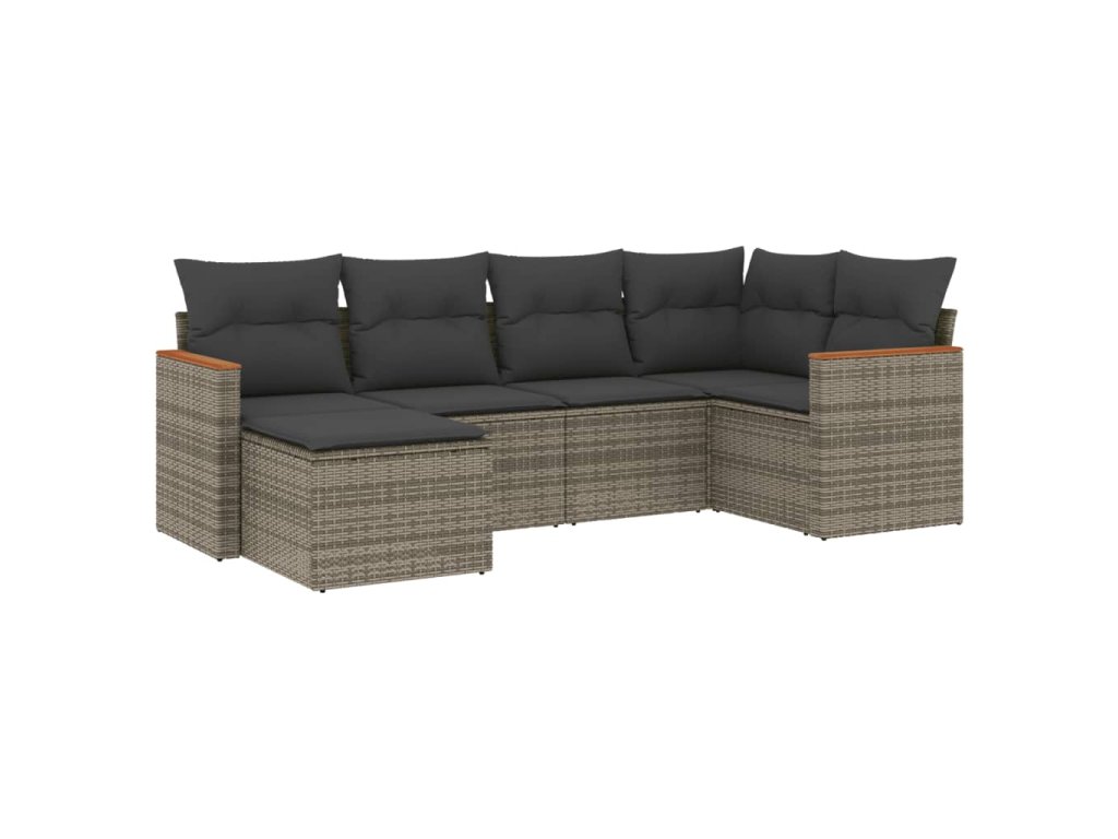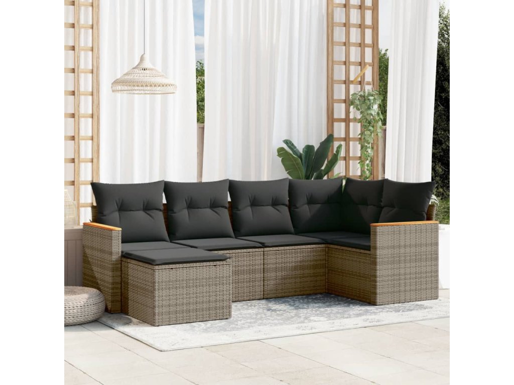 6dílná zahradní sedací souprava s poduškami šedá polyratan 3226179