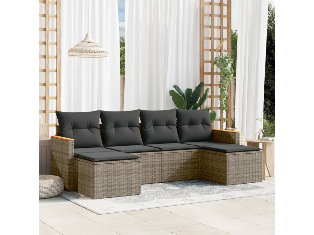6dílná zahradní sedací souprava s poduškami šedá polyratan 3226221