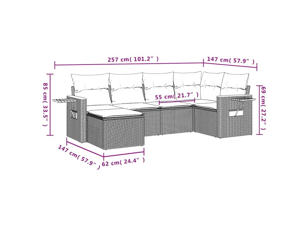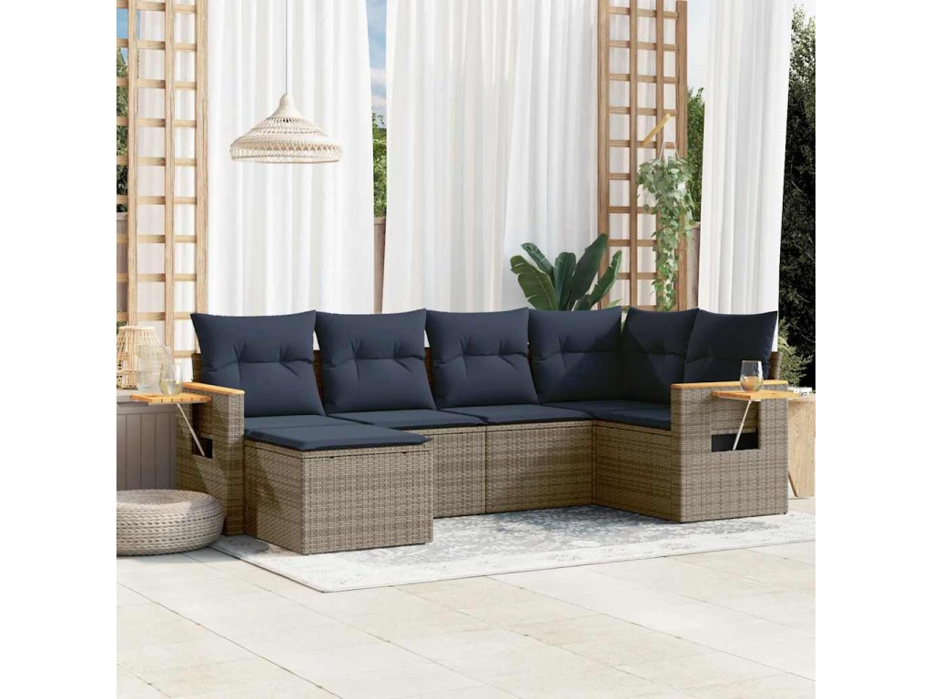 6dílná zahradní sedací souprava s poduškami šedá polyratan 3227020
