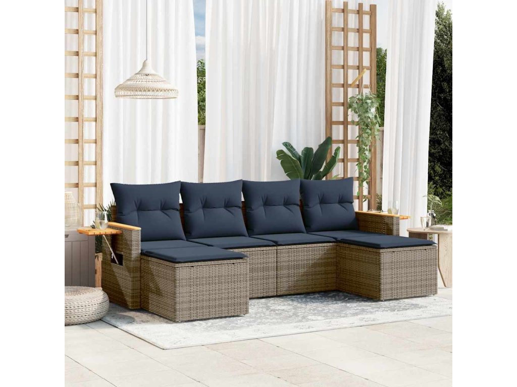 6dílná zahradní sedací souprava s poduškami šedá polyratan 3227062