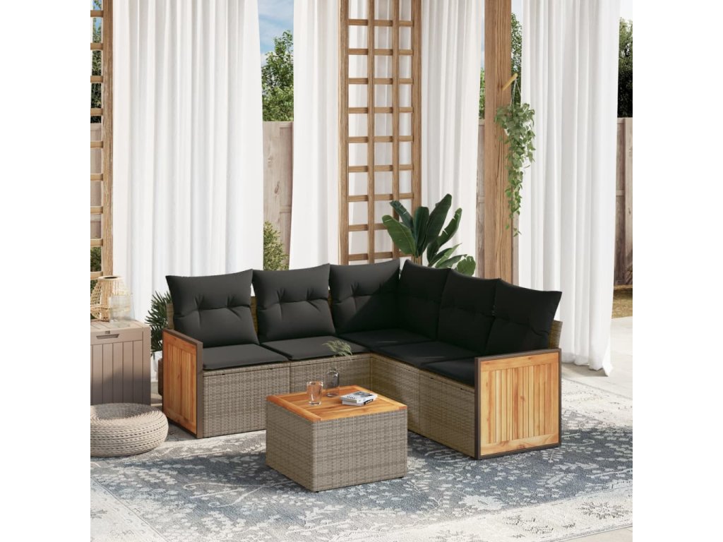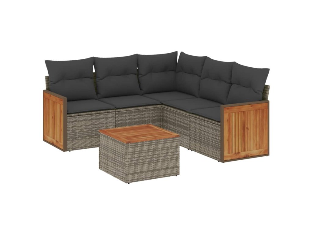 6dílná zahradní sedací souprava s poduškami šedá polyratan 3227649