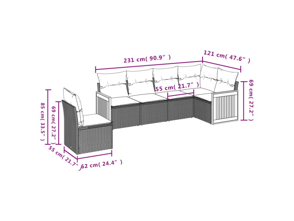 6dílná zahradní sedací souprava s poduškami šedá polyratan 3227698