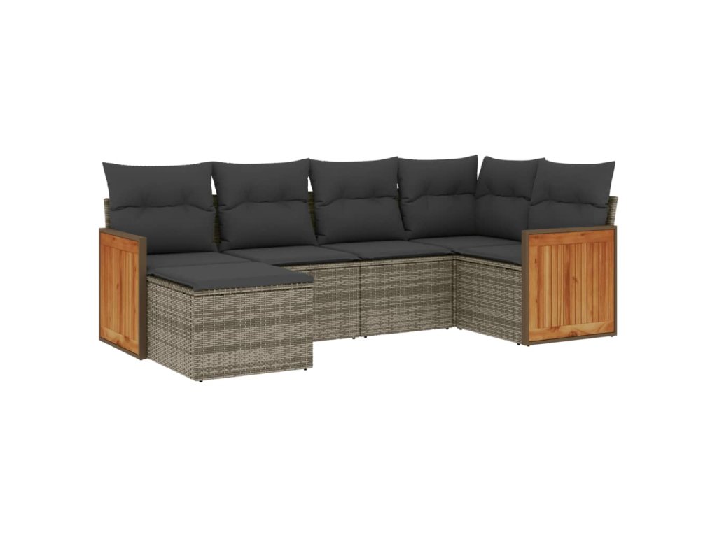 6dílná zahradní sedací souprava s poduškami šedá polyratan 3227859