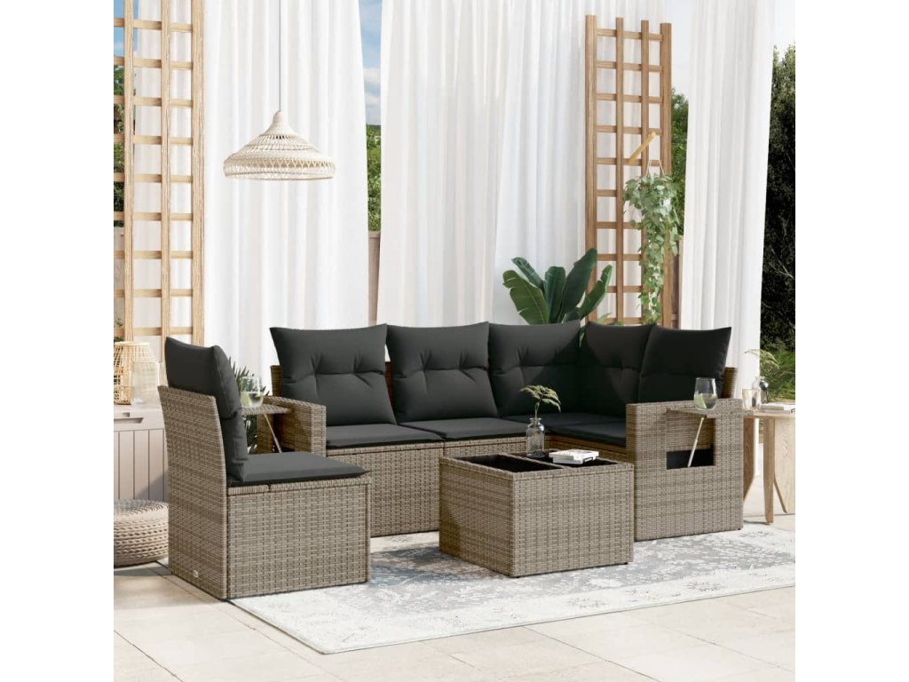 6dílná zahradní sedací souprava s poduškami šedá polyratan 3252517