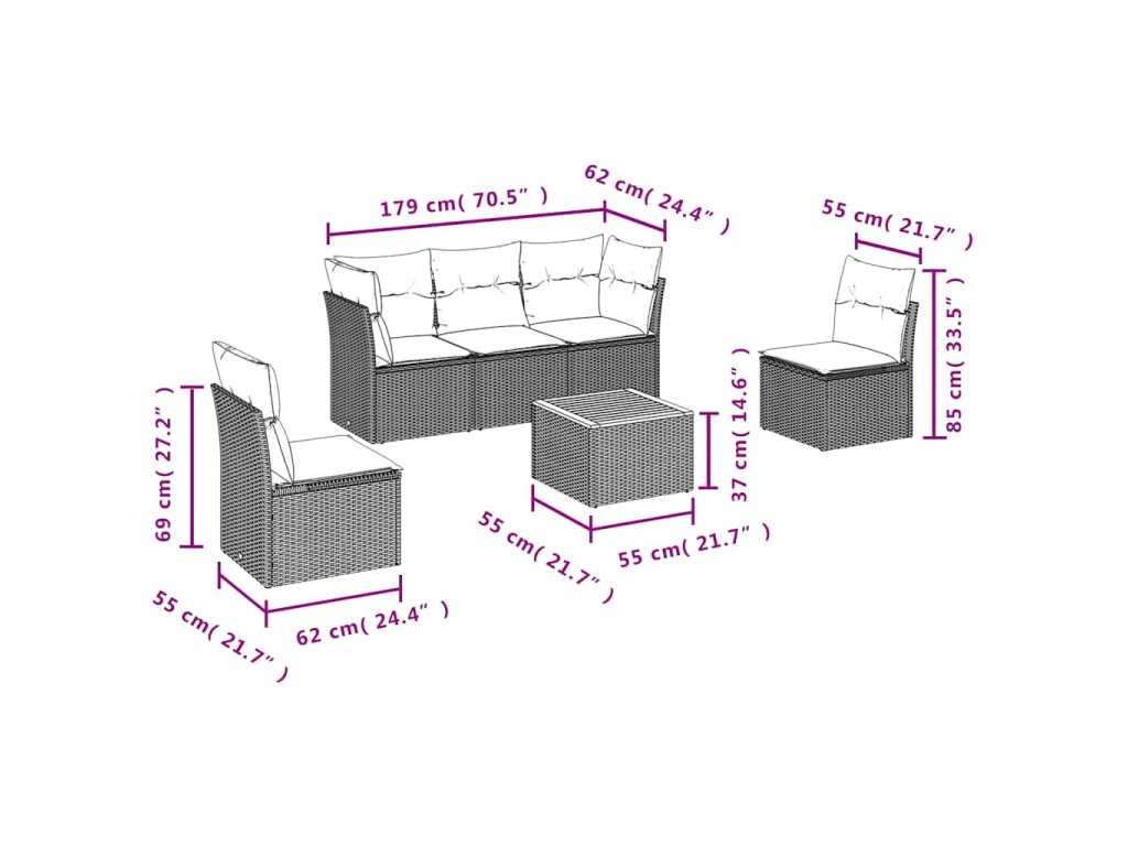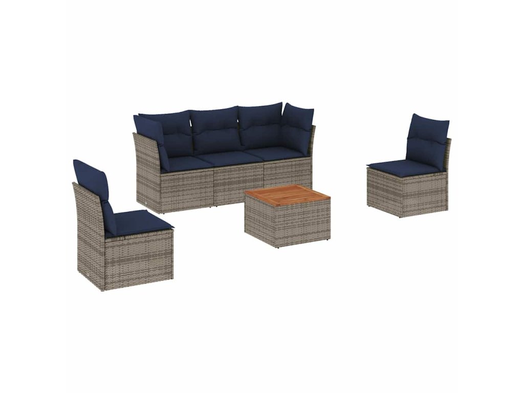 6dílná zahradní sedací souprava s poduškami šedá polyratan 3255879