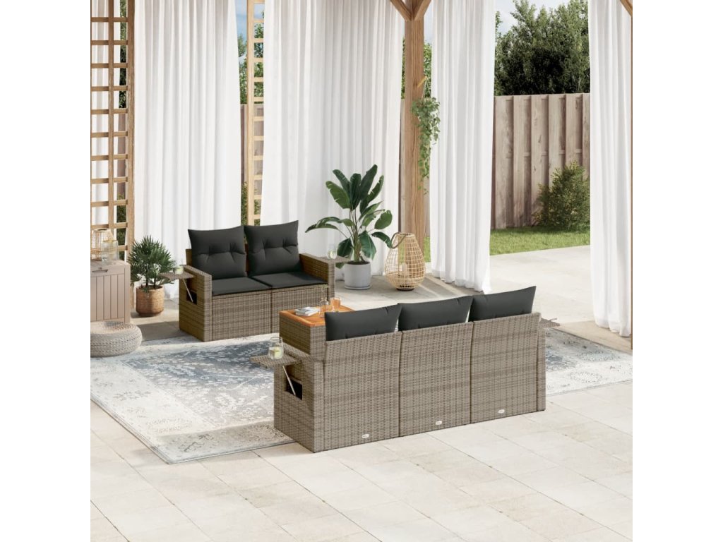 6dílná zahradní sedací souprava s poduškami šedá polyratan 3256781