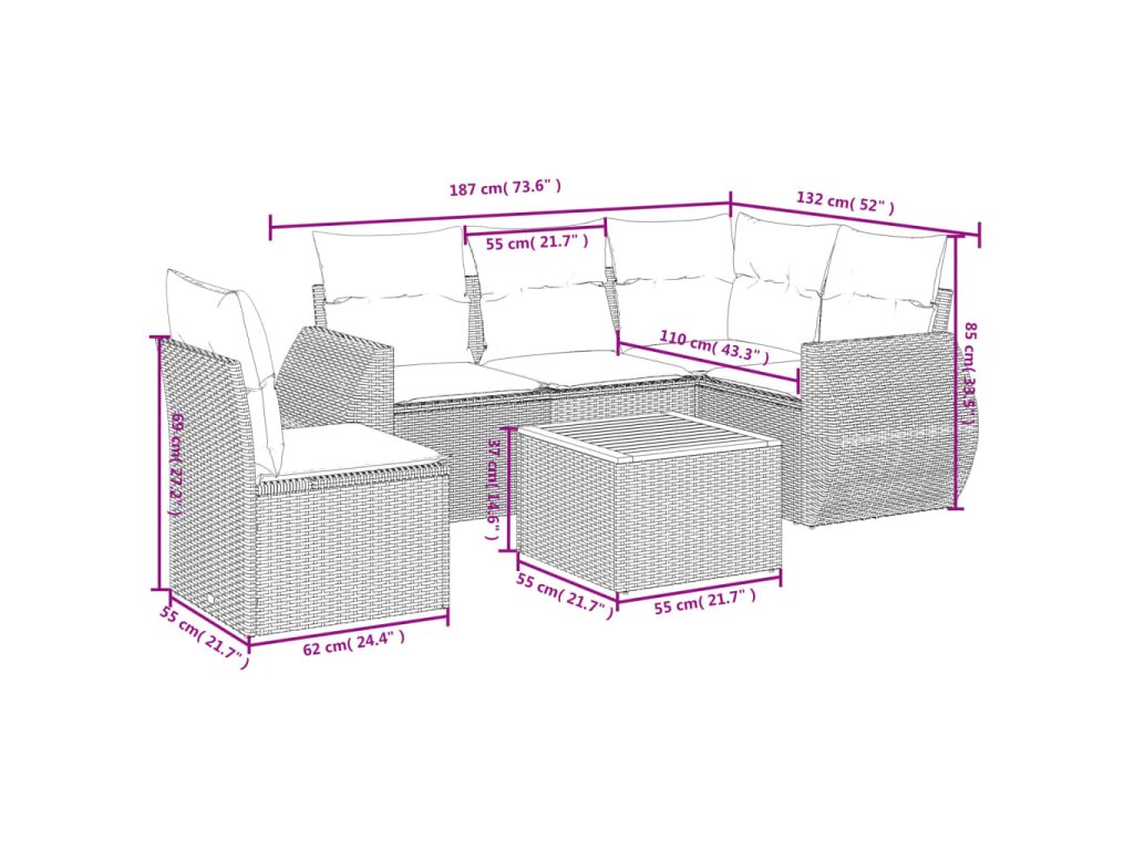 Tato zahradní sedací souprava je dokonalým doplňkem vaší zahrady, terasy nebo dvorku a poskytne vám pohodlné a příjemné místo, kde si můžete povídat s rodinou a přáteli nebo jen tak odpočívat a užívat si pobyt venku.