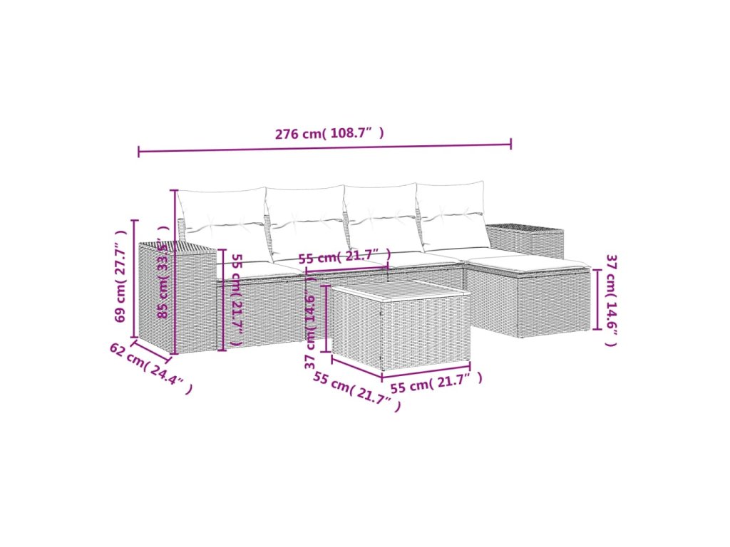 6dílná zahradní sedací souprava s poduškami šedá polyratan 3257754