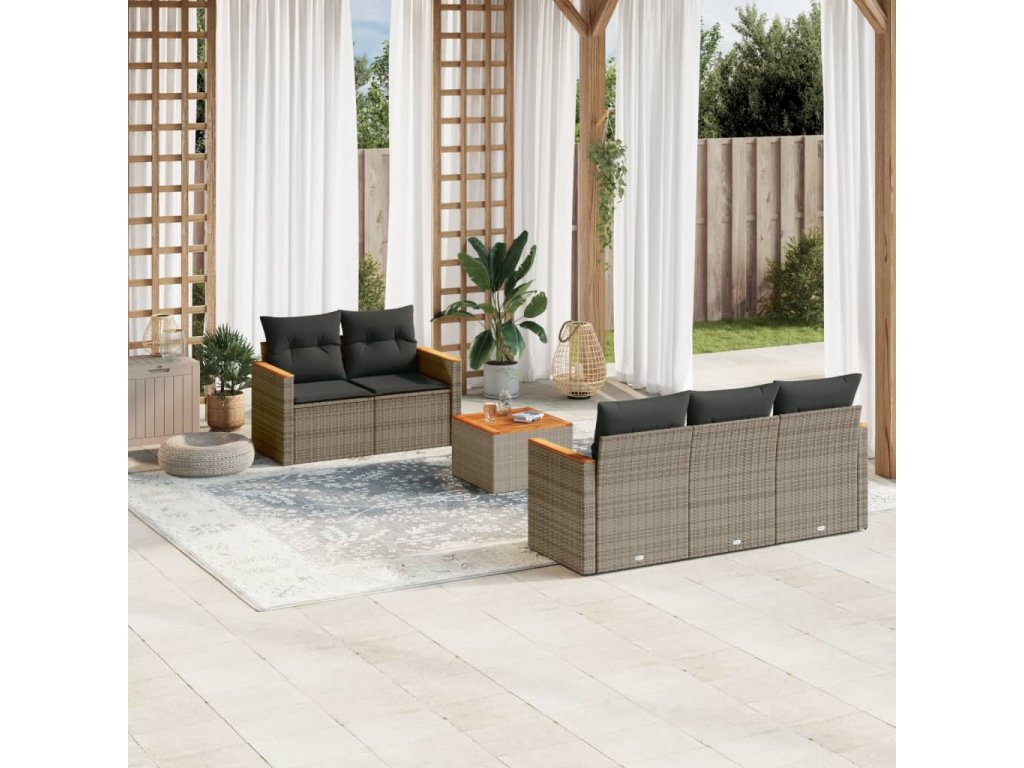 6dílná zahradní sedací souprava s poduškami šedá polyratan 3258189