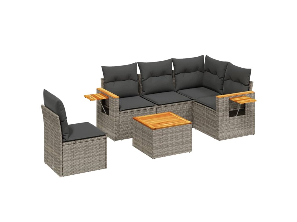6dílná zahradní sedací souprava s poduškami šedá polyratan 3259225