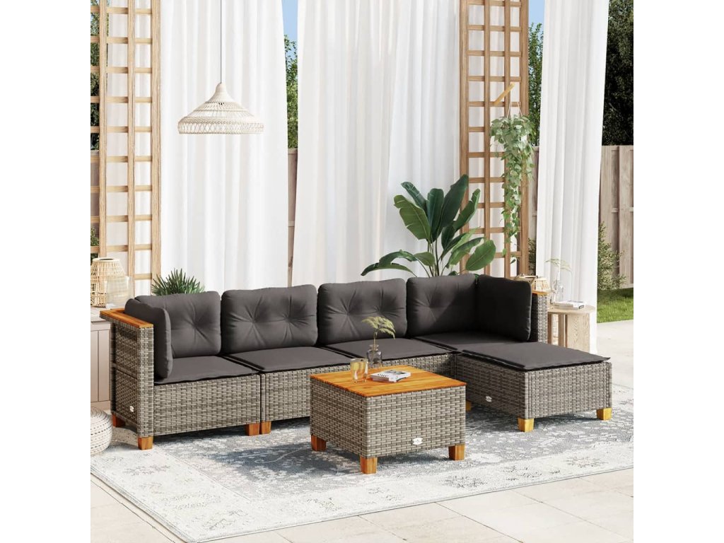 6dílná zahradní sedací souprava s poduškami šedá polyratan 3261792