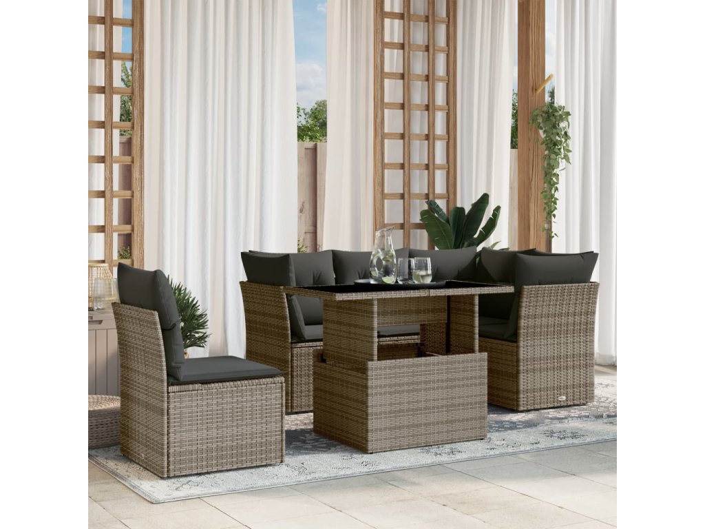 6dílná zahradní sedací souprava s poduškami šedá polyratan 3266590