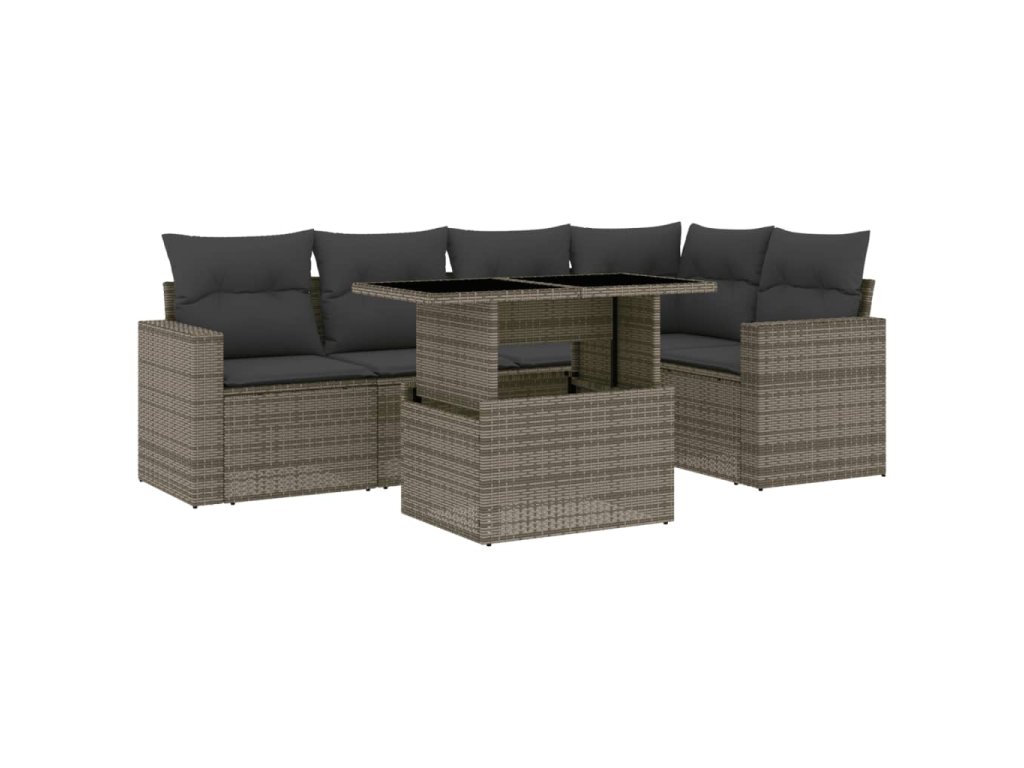 6dílná zahradní sedací souprava s poduškami šedá polyratan 3267260