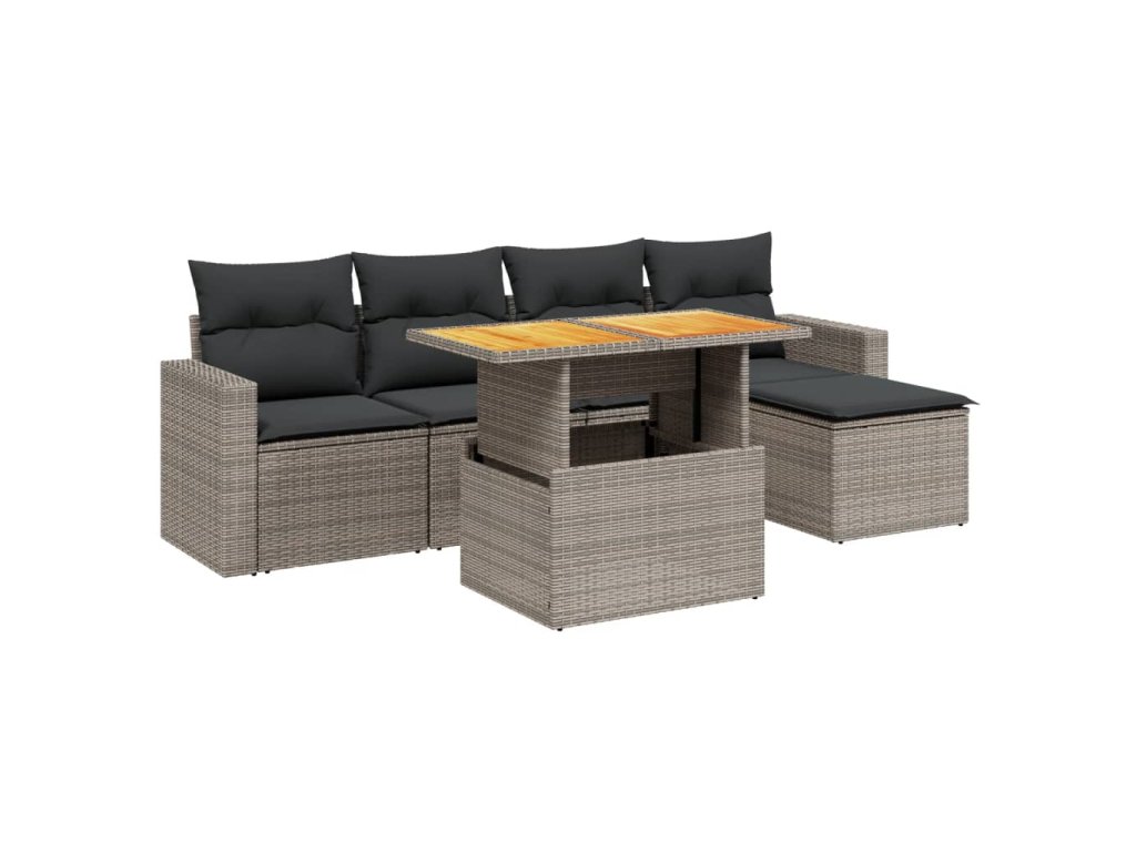 6dílná zahradní sedací souprava s poduškami šedá polyratan 3271291
