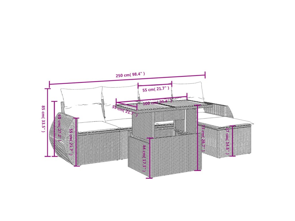 Tato zahradní sedací souprava je dokonalým doplňkem vaší zahrady, terasy nebo dvorku a poskytne vám pohodlné a příjemné místo, kde si můžete povídat s rodinou a přáteli nebo jen tak odpočívat a užívat si pobyt venku.