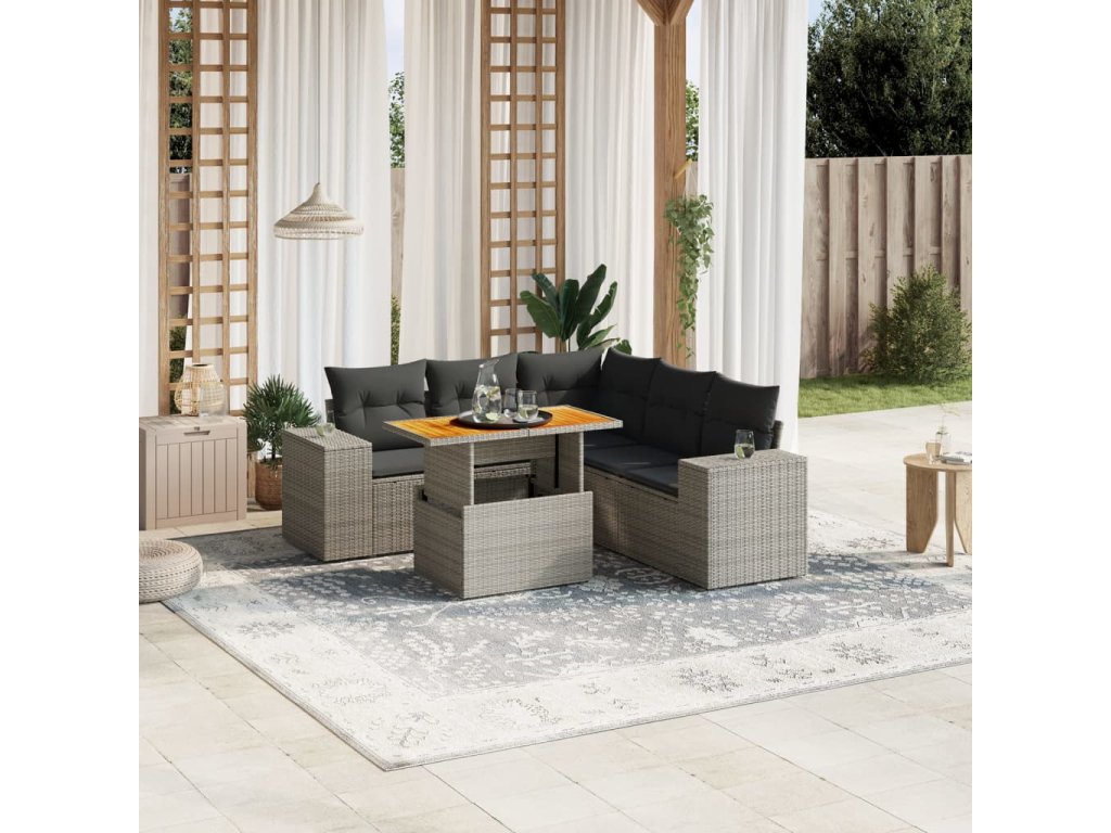6dílná zahradní sedací souprava s poduškami šedá polyratan 3272635