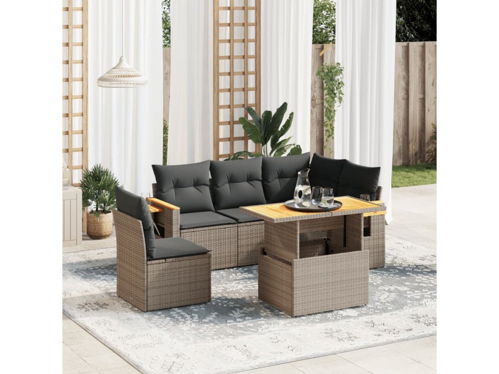 6dílná zahradní sedací souprava s poduškami šedá polyratan 3273524