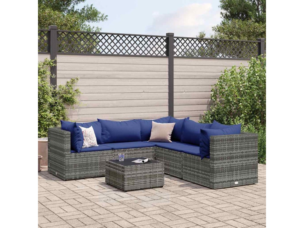 6dílná zahradní sedací souprava s poduškami šedá polyratan 3308135