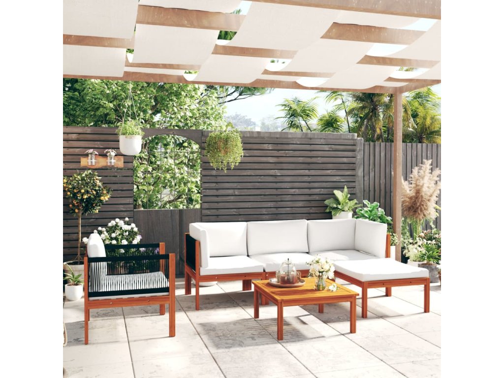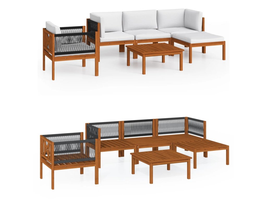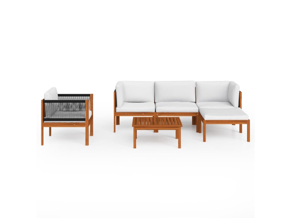 6dílná zahradní sedací souprava s polštáři krémové dřevo akácie a provaz 3057880