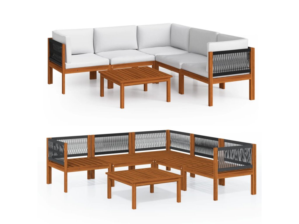 6dílná zahradní sedací souprava s polštáři krémové dřevo akácie a provaz 3057888