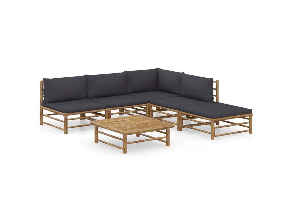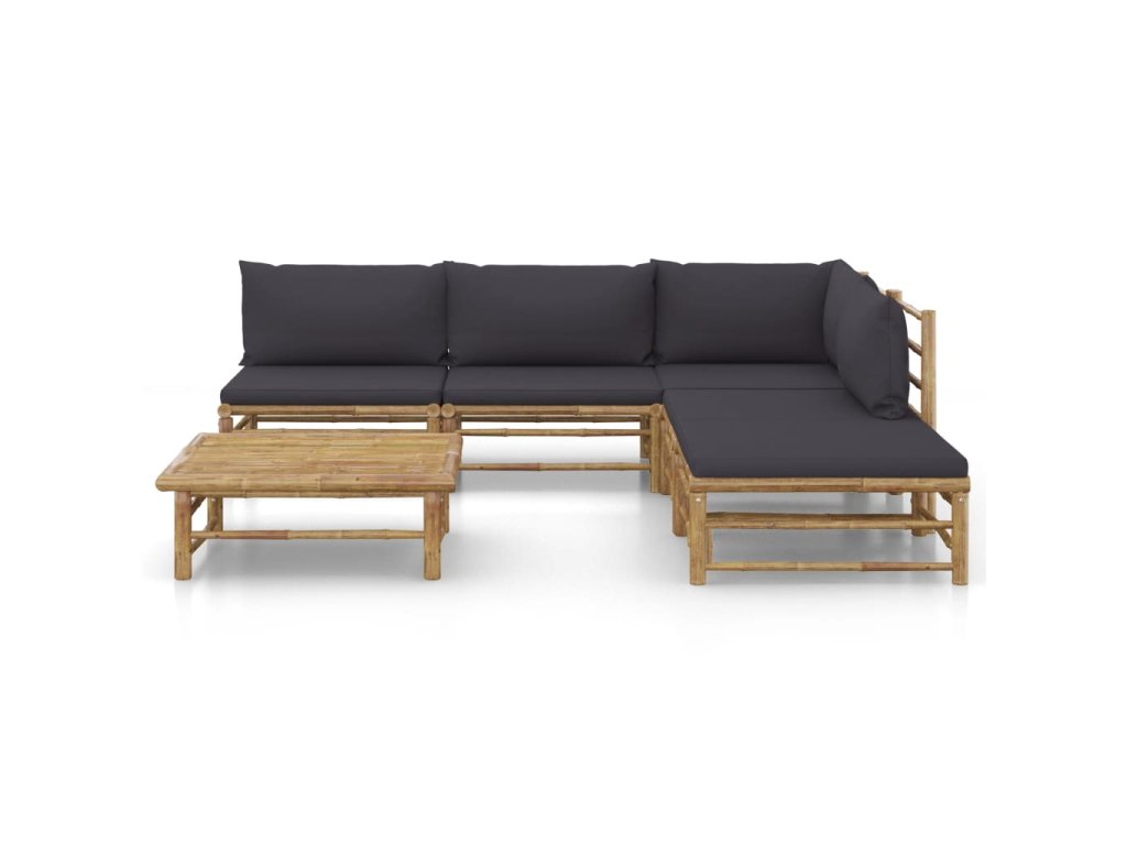 6dílná zahradní sedací souprava + tmavě šedé podušky bambus 3058236