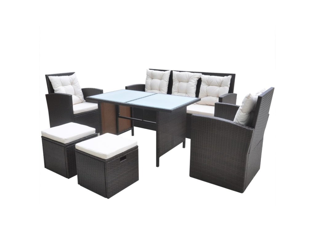 6dílný zahradní jídelní set s poduškami polyratan hnědý 42644