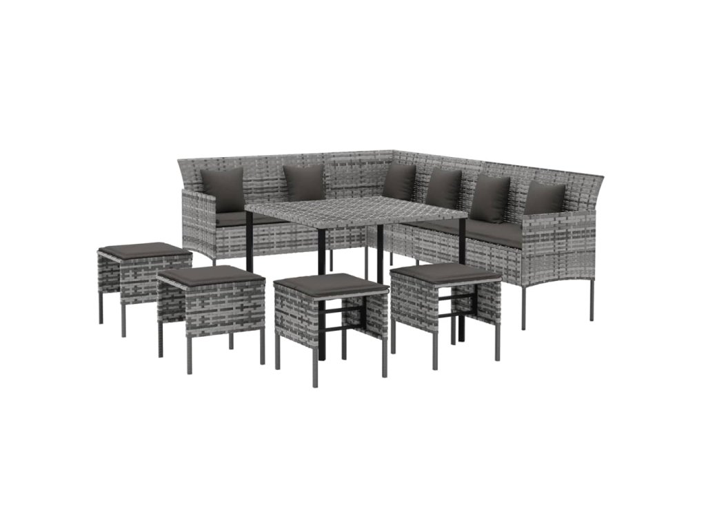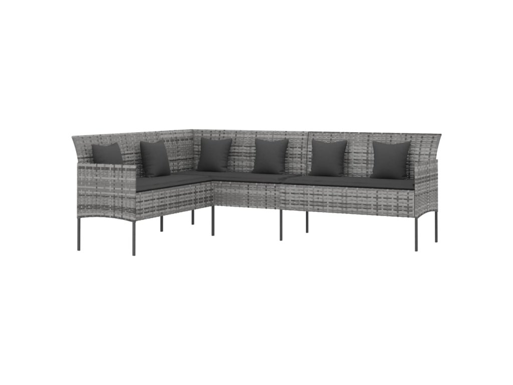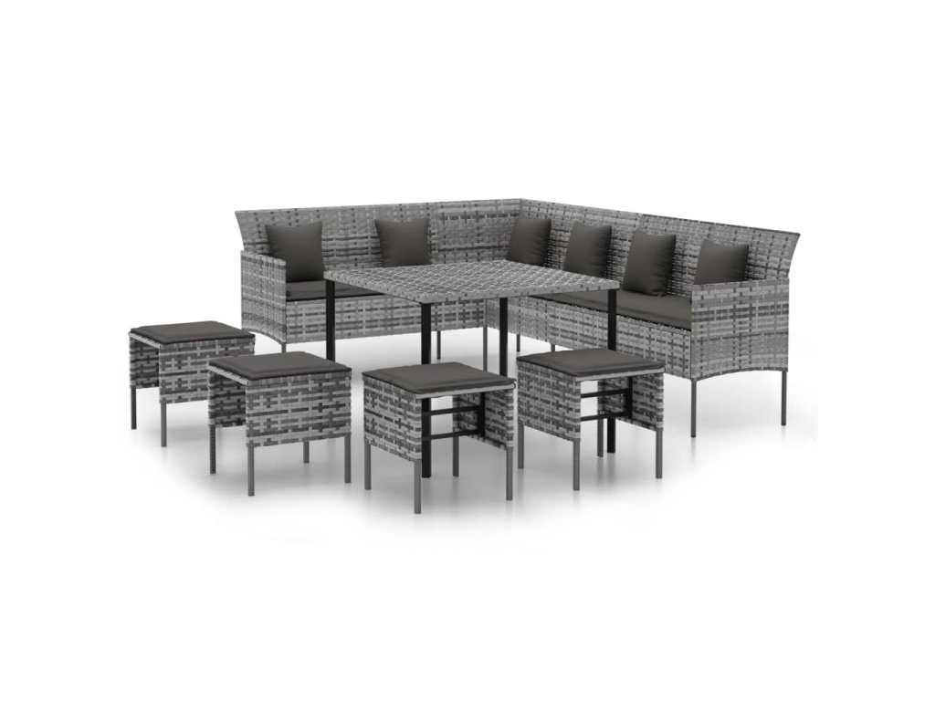 6dílný zahradní jídelní set s poduškami šedý polyratan 3186651