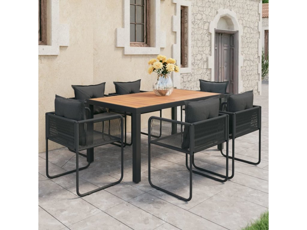 7dílná zahradní jídelní souprava PVC ratan černá a hnědá 3060109