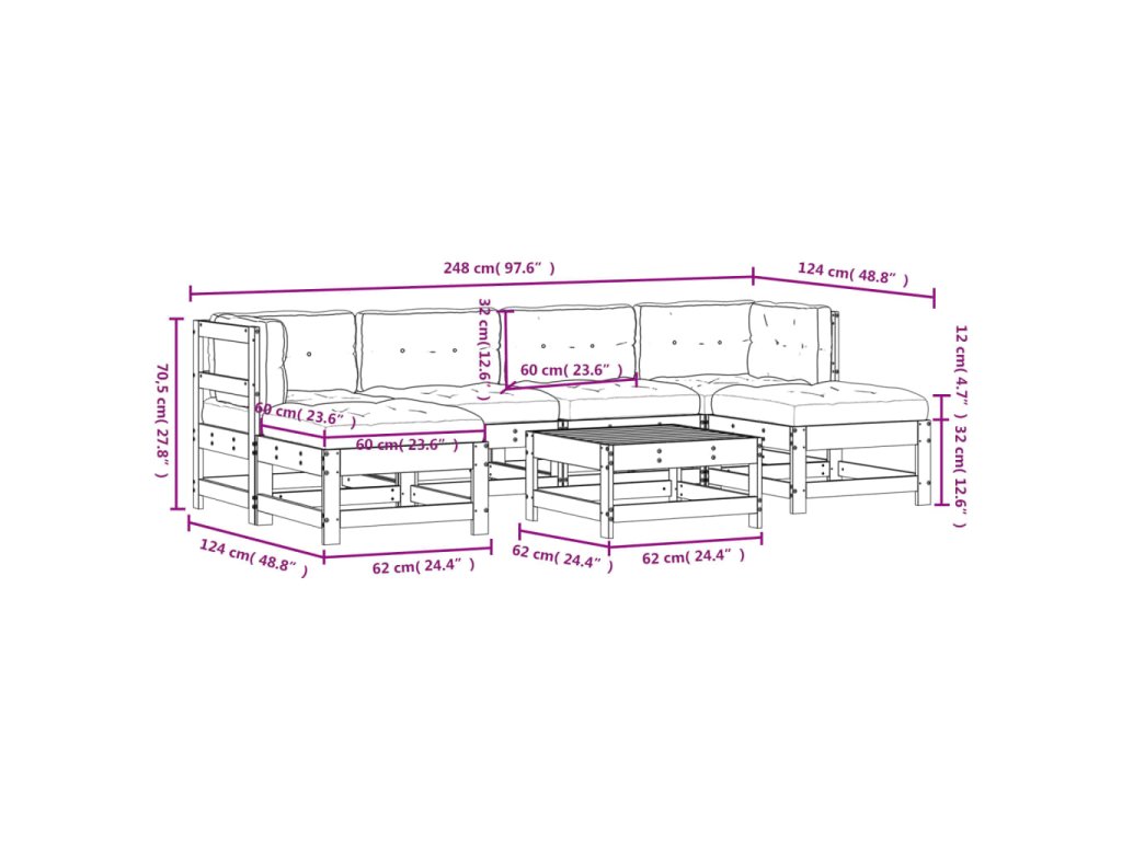 7dílná zahradní sedací souprava a podušky impregnovaná borovice 3185933