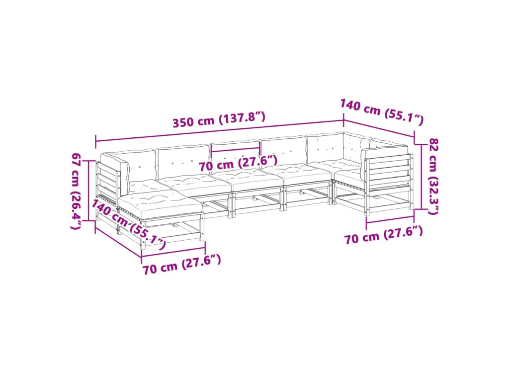 7dílná zahradní sedací souprava a podušky impregnovaná borovice 3299548