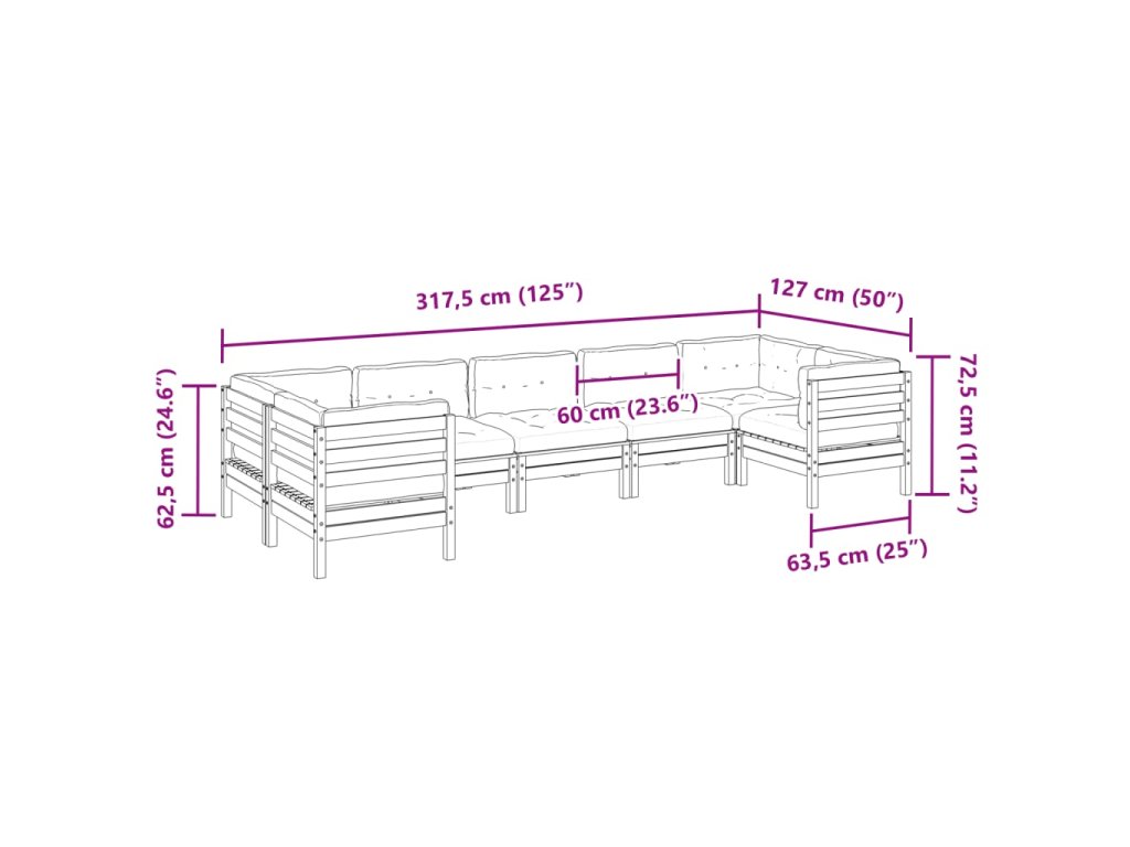7dílná zahradní sedací souprava a podušky impregnovaná borovice 3299624