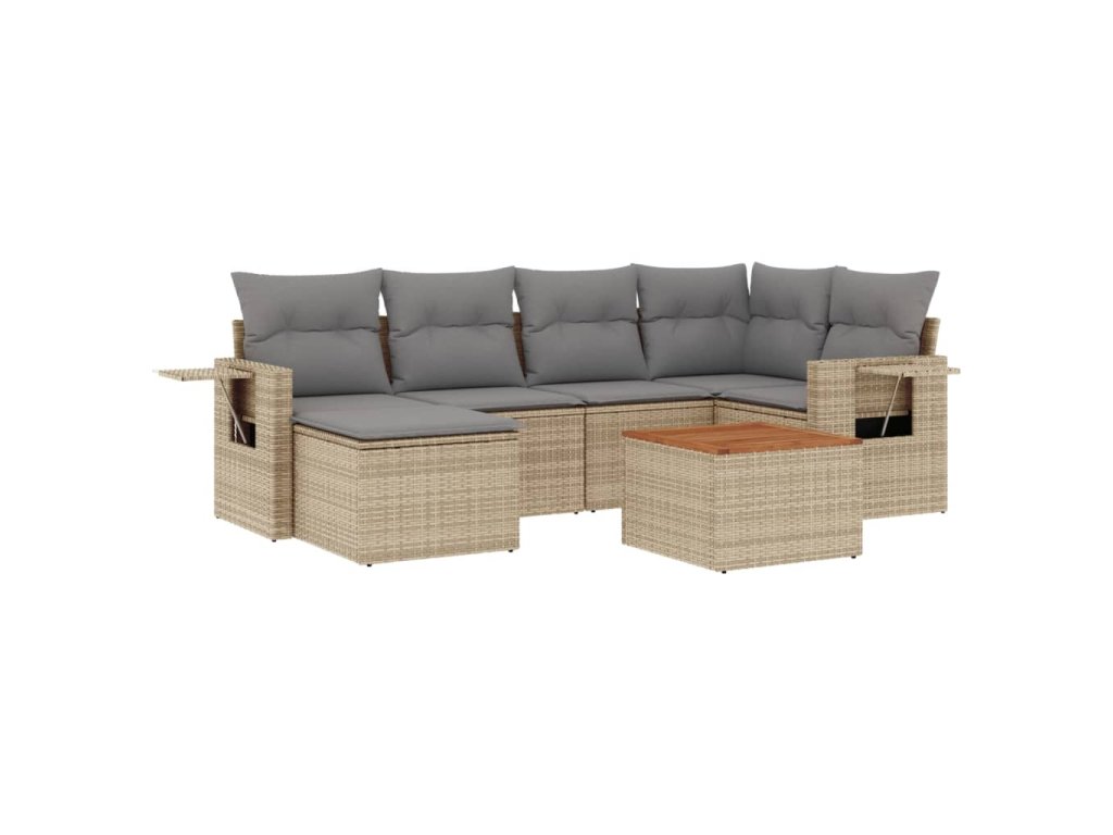 7dílná zahradní sedací souprava a podušky mix béžové polyratan 3256997