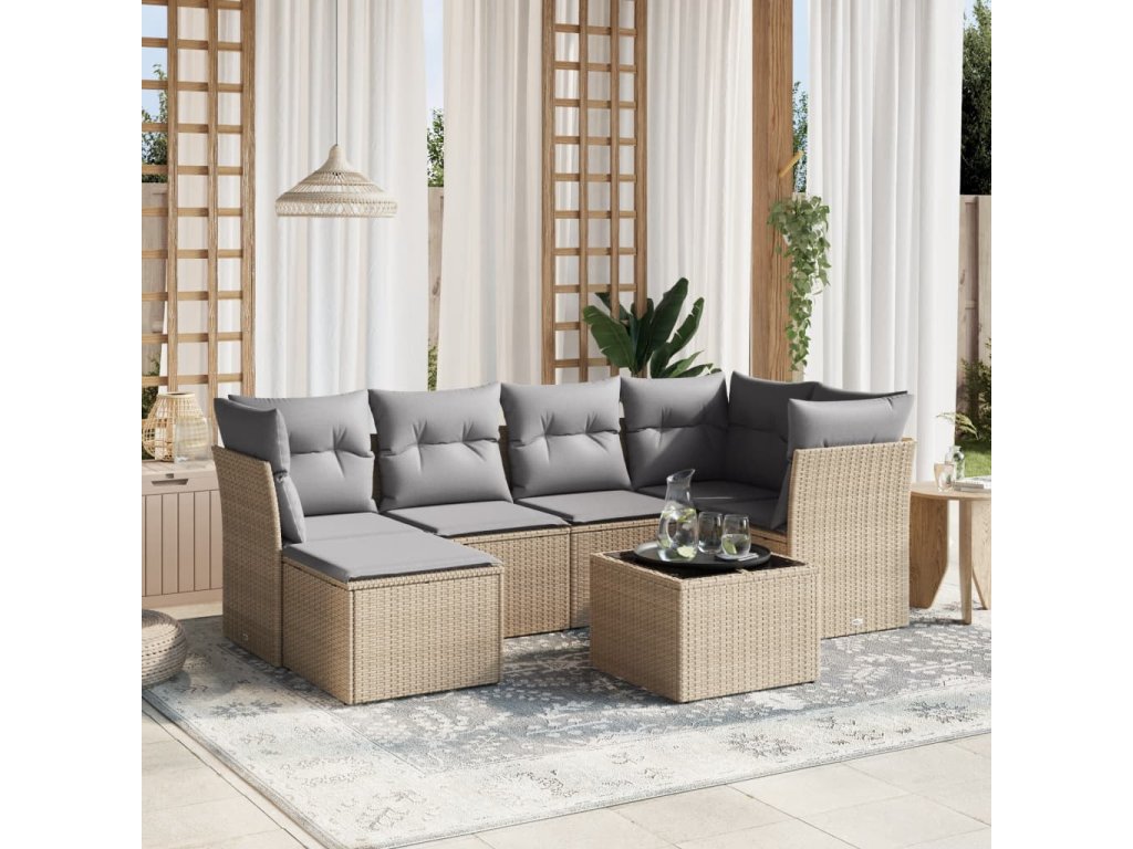 7dílná zahradní sedací souprava a podušky mix béžové polyratan 3263185