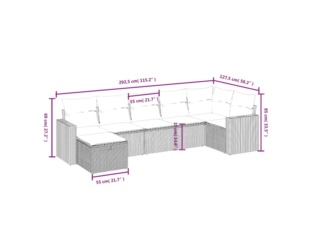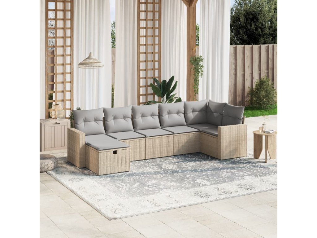 7dílná zahradní sedací souprava a podušky mix béžové polyratan 3263505