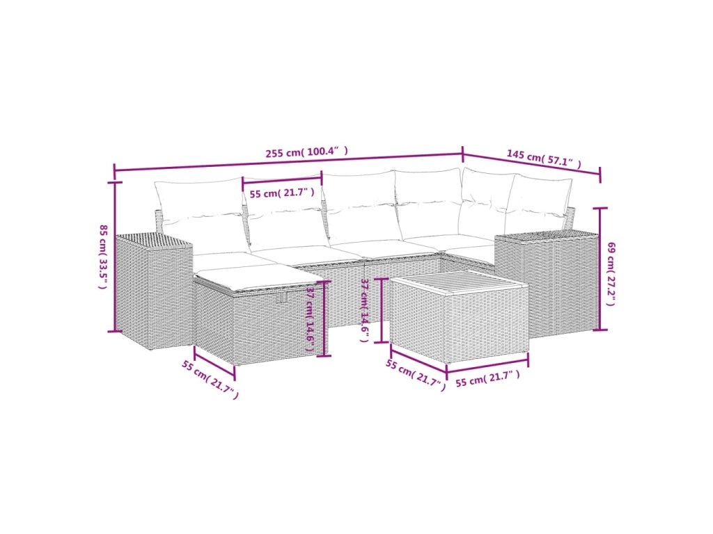 Tato zahradní sedací souprava je dokonalým doplňkem vaší zahrady, terasy nebo dvorku a poskytne vám pohodlné a příjemné místo, kde si můžete povídat s rodinou a přáteli nebo jen tak odpočívat a užívat si pobyt venku.