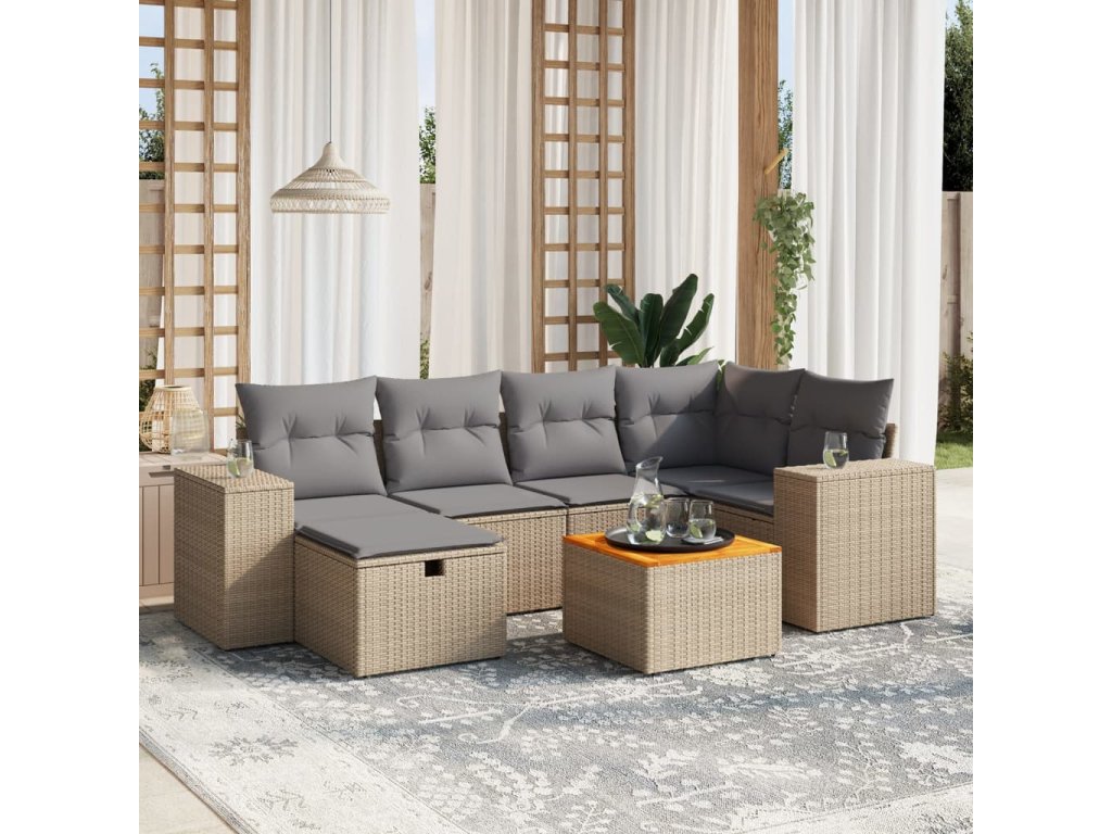 7dílná zahradní sedací souprava a podušky mix béžové polyratan 3265175