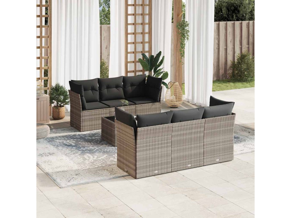 7dílná zahradní sedací souprava a podušky světle šedá polyratan 3217262